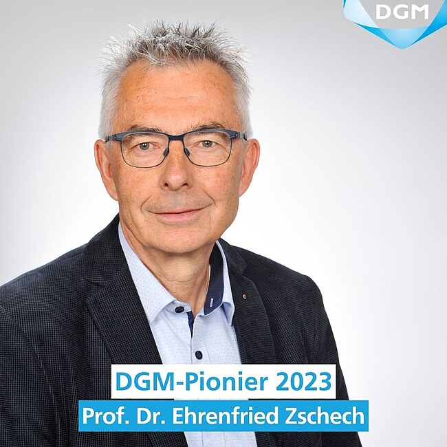 Seit 2014 zeichnet die DGM mit dem DGM-Pionier die persönlichen Mitglieder unser Fachverbandes aus, die mit ihrem Engagement zum Vorreiter der wissenschaftlichen Vernetzung und der modernen Kooperation von akademischer und industrieller Forschung geworden sind. Wir gratulieren herzlich Prof. Dr. Ehrenfried Zschech, CTO und Co-Founder der deepXscan GmbH, zum DGM-Pionier 2023.