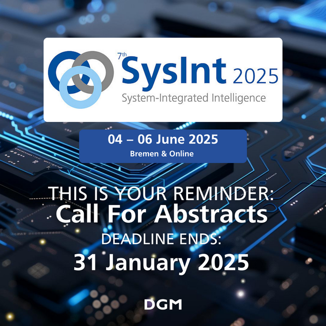 Vom 04. bis 06. Juni 2025 kommen in Bremen und online Wissenschaft und Industrie zusammen, um über die Integration intelligenter Funktionalitäten in Materialien, Komponenten, Systeme und Produkte zu diskutieren. Die SysInt 2025 bietet eine einmalige Gelegenheit, Einblicke in neueste Technologien, Anwendungen und Methoden zu gewinnen und diese gemeinsam weiterzuentwickeln.