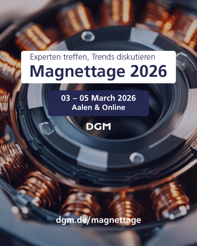 Die Magnettage 2026 finden an der Hochschule Aalen statt – im Osten Baden-Württembergs, in einer Region, die Technik, Geschichte und Lebensqualität vereint. Die Teilnahme ist sowohl in Präsenz als auch digital möglich. Weitere Informationen, Programmupdates sowie die Möglichkeit zur Beitragseinreichung folgen in Kürze.
