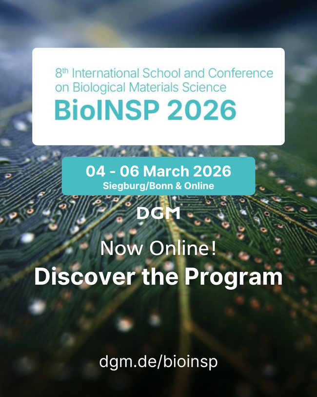 - Plenary Speakers: Impulse aus erster Hand: Ein weiteres Highlight des Programms sind die Plenary Speakers. Ihre Vorträge setzen wichtige inhaltliche Akzente und eröffnen neue Perspektiven auf bioinspirierte Materialforschung.