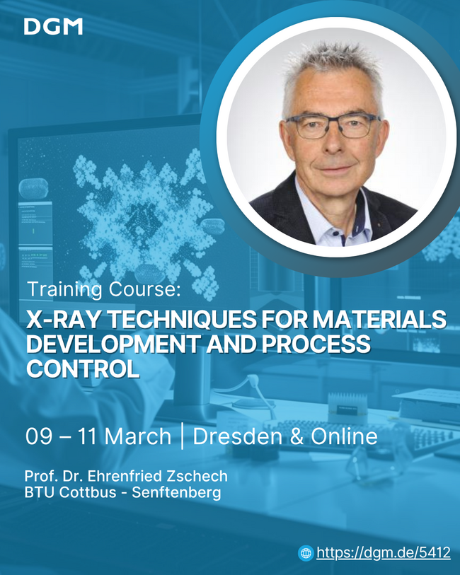 - Neue Entwicklungen in der Röntgenanwendung: Bleiben Sie auf dem neuesten Stand mit den neuesten Forschungen und Innovationen in der Röntgentechnik. Themen wie Fortschritte in der Altersforschung von Materialien, in-situ- und operando-Messungen sowie Lösungen für branchenspezifische Herausforderungen werden behandelt.