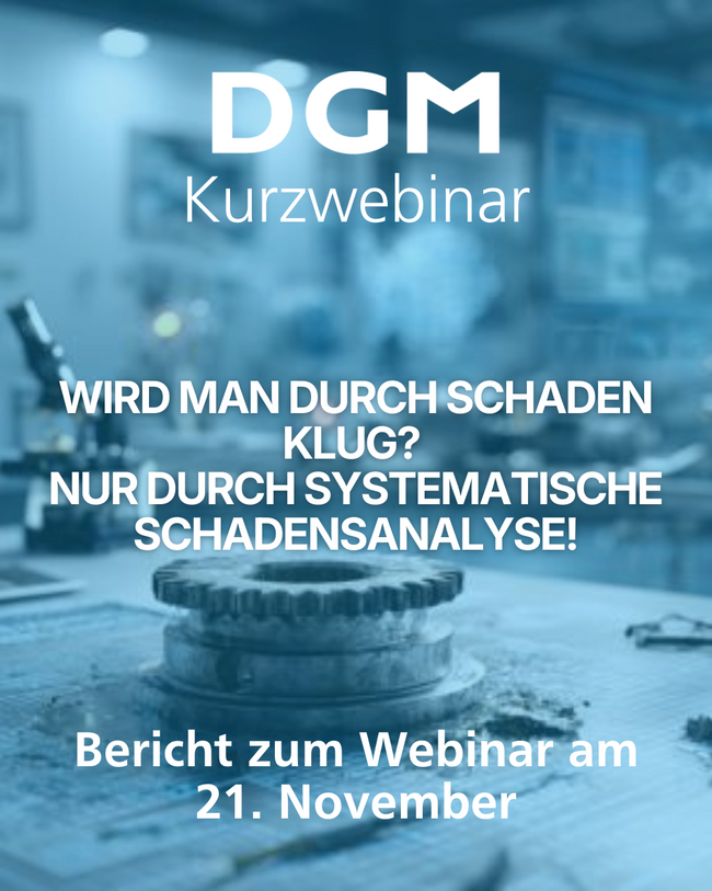 Für alle, die die Inhalte des Webinars weiter vertiefen möchten, bietet die mehrtägige DGM-Fortbildung „Systematische Beurteilung technischer Schadensfälle“ am 08. – 13. März 2026 in Ermatingen eine umfassende Gelegenheit. Die Veranstaltung greift zentrale Themen wie Spannungsrisskorrosion, Fehlerbilder und analytische Vorgehensweisen erneut auf, führt sie jedoch deutlich weiter aus und verbindet sie mit praktischen Übungen und detaillierten Mechanismenanalysen.