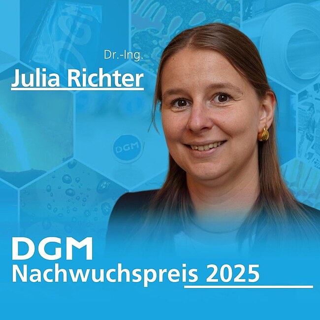 We would like to congratulate Dr.-Ing. Julia Richter again on receiving this special award. We look forward to honoring her and the other award winners at DGM-Tag 2025, where we can get to know them personally.