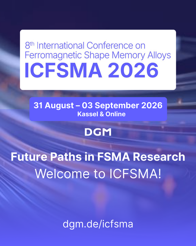 The conference topics, which will be published shortly, cover the entire spectrum of FSMA research. These include fundamental mechanisms, magneto-mechanical coupling processes, microstructural design, modeling approaches, processing technologies, and modern characterization methods. Applications in actuators, sensors, and energy-related systems are also a focus, with both fundamental questions and translation-oriented contributions being considered. - Venue Kassel