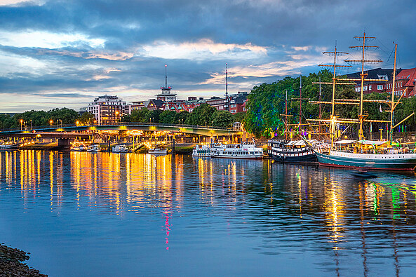 Bremen, the cosmopolitan city on the Weser river, looks back on 1,200 years of history. Although the grand old buildings around the market square betray its roots as an ancient trading centre, Bremen has the feel of a thriving city on the up. But for the observant traveller, the city offers a journey back through the centuries, full of monuments to a distinguished history and bristling with enthralling stories. Two of Bremen's most famous landmarks are the magnificent Weser Renaissance town hall and the grand old statue of Roland on the historical market square. They have been a symbol of independence since 1404. The town hall and Roland enjoy UNESCO World Heritage protection, while Bremen Cathedral, the Schnoor (Bremen's oldest quarter) and Böttcherstrasse with its unusual red-brick architecture are all unparalleled in their historical charm. The Bremen Town Musicians from the Brothers Grimm fairytale are the emblem of the city and a ubiquitous presence, most famously in the form of a bronze statue.
