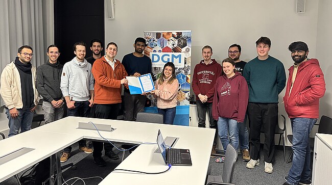 Am 30. Januar 2023 war es endlich soweit, die offizielle Gründung der neuen Ortsgruppe Jung-DGM Augsburg wurde beurkundet. Die Veranstaltung startete mit einer spannenden Laborführung im Institut für Materials Resource Management (MRM) und wurde zum Tagesausklang mit einem gemeinsamen Abendessen abgerundet. Ungefähr zehn engagierte Studierende und Promovierende nahmen am Gründungszeremoniell teil. Gemeinsam mit den beiden Sprechern, Lina Moreno und Tharun Arety, stellen sie sich der Aufgabe, die Ortsgruppe aufzubauen.