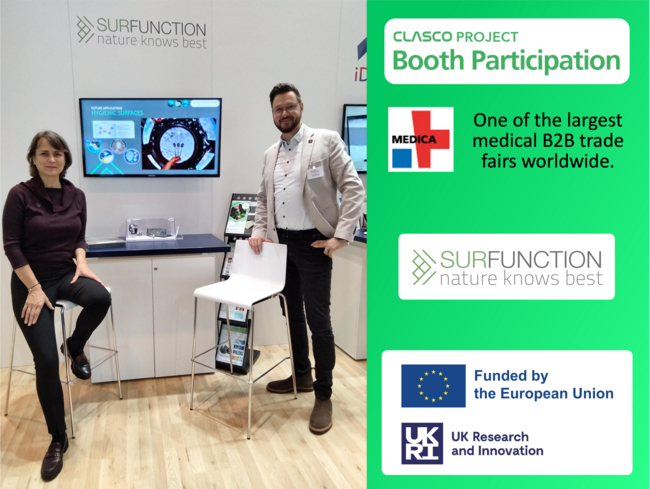 During MEDICA 2024, SurFunction engaged with an international audience of healthcare and manufacturing professionals. The team demonstrated how the CLASCO project bridges the gap between innovative manufacturing technologies and real-world applications, especially in high-demand fields like biomedicine. By fostering discussions with potential end-users and partners, SurFunction aimed to ensure the project’s solutions meet industry needs and pave the way for future advancements.