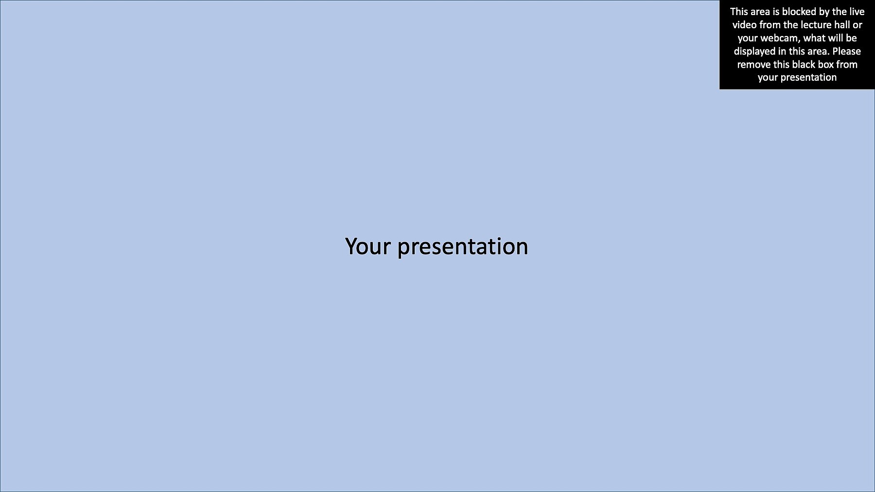 There are no specifications or guidelines for the design of your presentation on LightMAT 2027. Nevertheless, we ask you to keep the area marked in the template on your slides free, as your video/image will automatically be displayed there during the presentation. This would otherwise obscure important information.