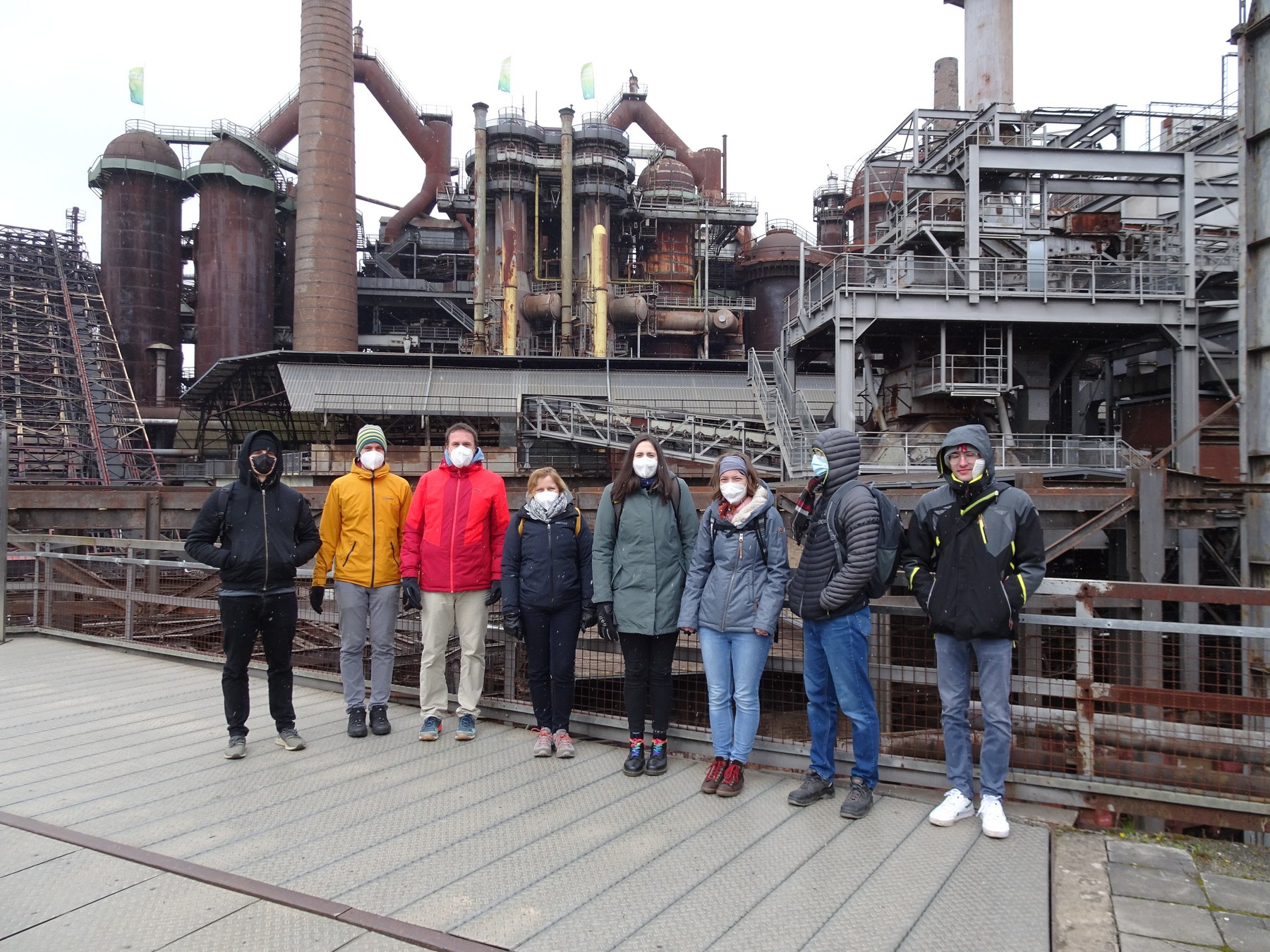 Am Samstag staunten die meisten nicht schlecht, als sie aus dem Fenster sahen. Die dünne Schneedecke, die vom Aprilwetter beschert wurde, war jedoch kein Hindernis für den Tagesplan. Damit auch der fachliche Aspekt beim Mentoring nicht zu kurz kommt, stand eine Exkursion zur Völklinger Hütte auf dem Programm. In dem UNESCO Weltkulturerbe lässt sich Geschichte der Materialwissenschaft und Werkstofftechnik hautnah erleben. Bei der knapp dreistündigen Führung durch die Anlage könnte der Tourguide auch die ein oder andere Geschichte aus seiner fast 50-jährigen Arbeitszeit in der Völklinger Hütte berichten, wofür wir uns an dieser Stelle auch herzlich bedanken möchten. Nach der eindrucksvollen Führung bei frostigen Temperaturen war anschließend eine kurze Aufwärmpause mit einem Heißgetränk nötig. Zurück in Kirkel wurden nach dem Abendessen ein paar Spiele vorbereitet, bei denen die Teilnehmer ihr Improvisationstalent und Zeichenkünste unter Beweis stellen konnten. Im Anschluss ergaben sich spannende Diskussionen, die bis spät in die Nacht fortgesetzt wurden. Auch hier wurden die Ergebnisse aus dem Workshop der Mentees aufgegriffen und in verschiedenen Kontexten diskutiert.