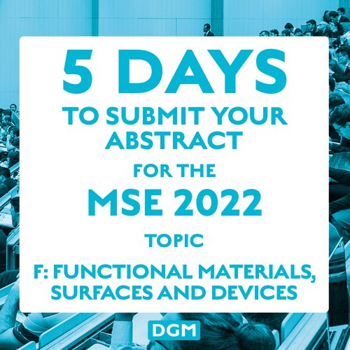 5 days to submit your abstract for the MSE 2022 topic F: Functional Materials, Surfaces and Devices Weiterlesen