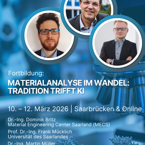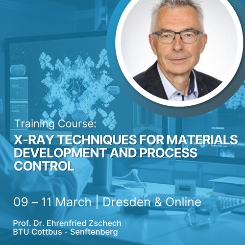 Nutzen Sie mit der Fortbildung „X-ray techniques for materials development and process control“ am 09. – 11. März 2026 in Dresden oder Online die… Weiterlesen