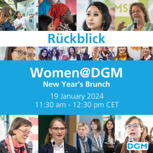 Das Women@DGM-Gremium organisiert einen virtuellen Neujahrsbrunch. Dieser findet am 19. Januar 2024 von 11:30 bis 12:30 Uhr (MEZ) statt. Weiterlesen