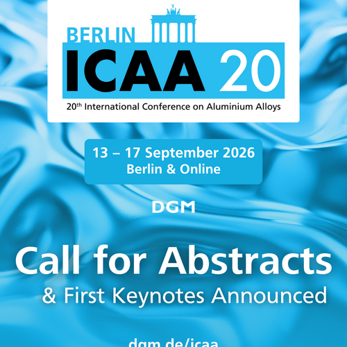 Die 20th International Conference on Aluminium Alloys (ICAA) lädt Forschende dazu ein, bis zum 31. Januar 2026 Abstracts für Vorträge und Poster… Weiterlesen