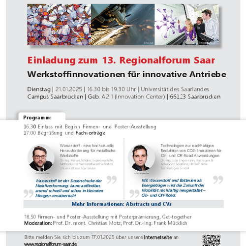 Einladung zum 13. Regionalforum Saar: Werkstoffinnovationen für innovative Antriebe
