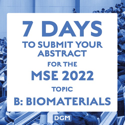 7 days to submit your abstract for the MSE 2022 topic B: Biomaterials Weiterlesen